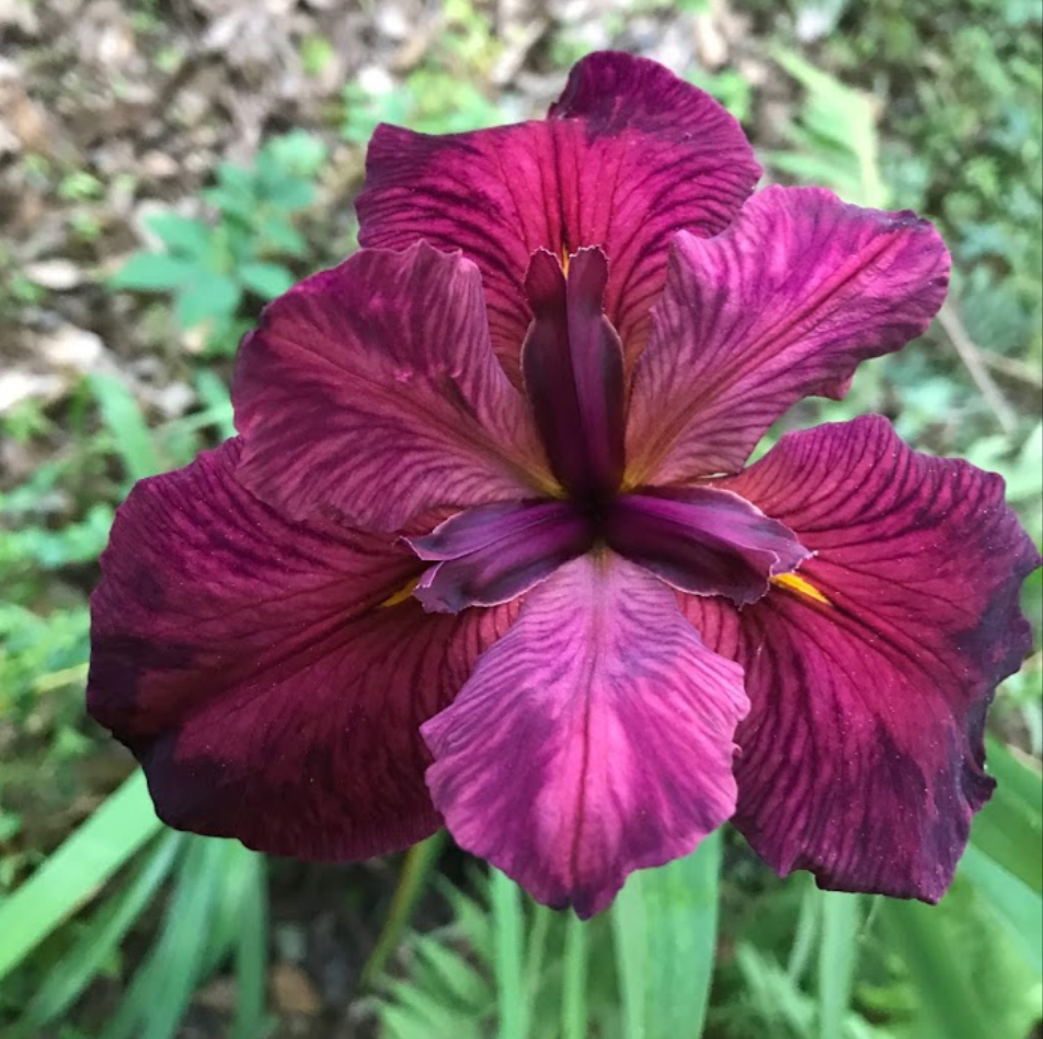 Deep rose red splashed with violet rose. Unique color. (Sidney Conger, R. 1956). 30" height and midseason bloomer.