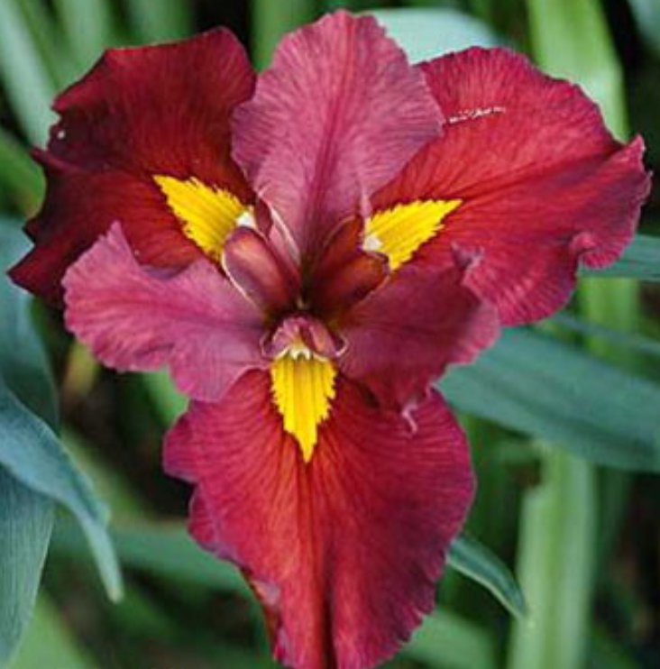 Still one of the best. Award winner which exhibits a brilliant currant red self with bright gold signal. (Frank Chowning, R. 1976). 32" height and early season bloomer.