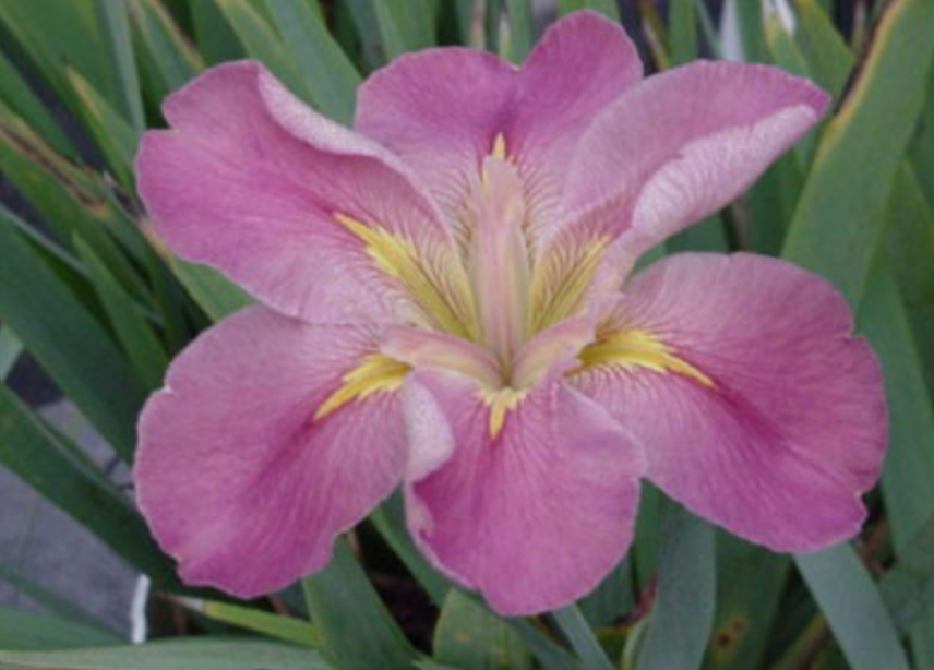 Coral Pink with medium yellow signal. Good grower and displays well.(Joseph Mertzweiller, R. 1990). 34-36" height and midseason bloomer.