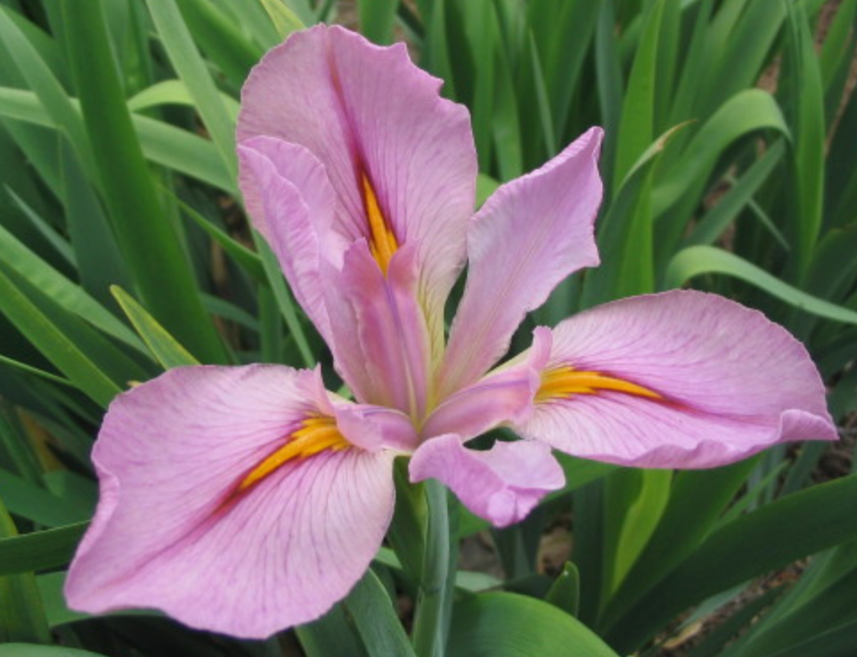 Lavender pink with long orange-yellow signals bordered by narrow maroon margin at tips. Always a garden favorite. (Charles W. Arny, R. 1978) 36" height and midseason bloomer.