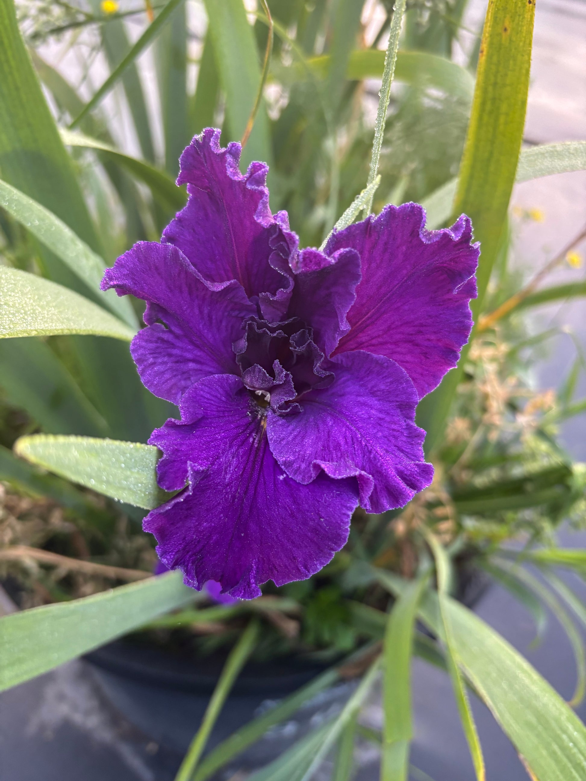 Purple self, falls with yellow signal; ruffled; slight fragrance.(John C. Taylor R. 1996). 47" height and mid to late season bloomer.