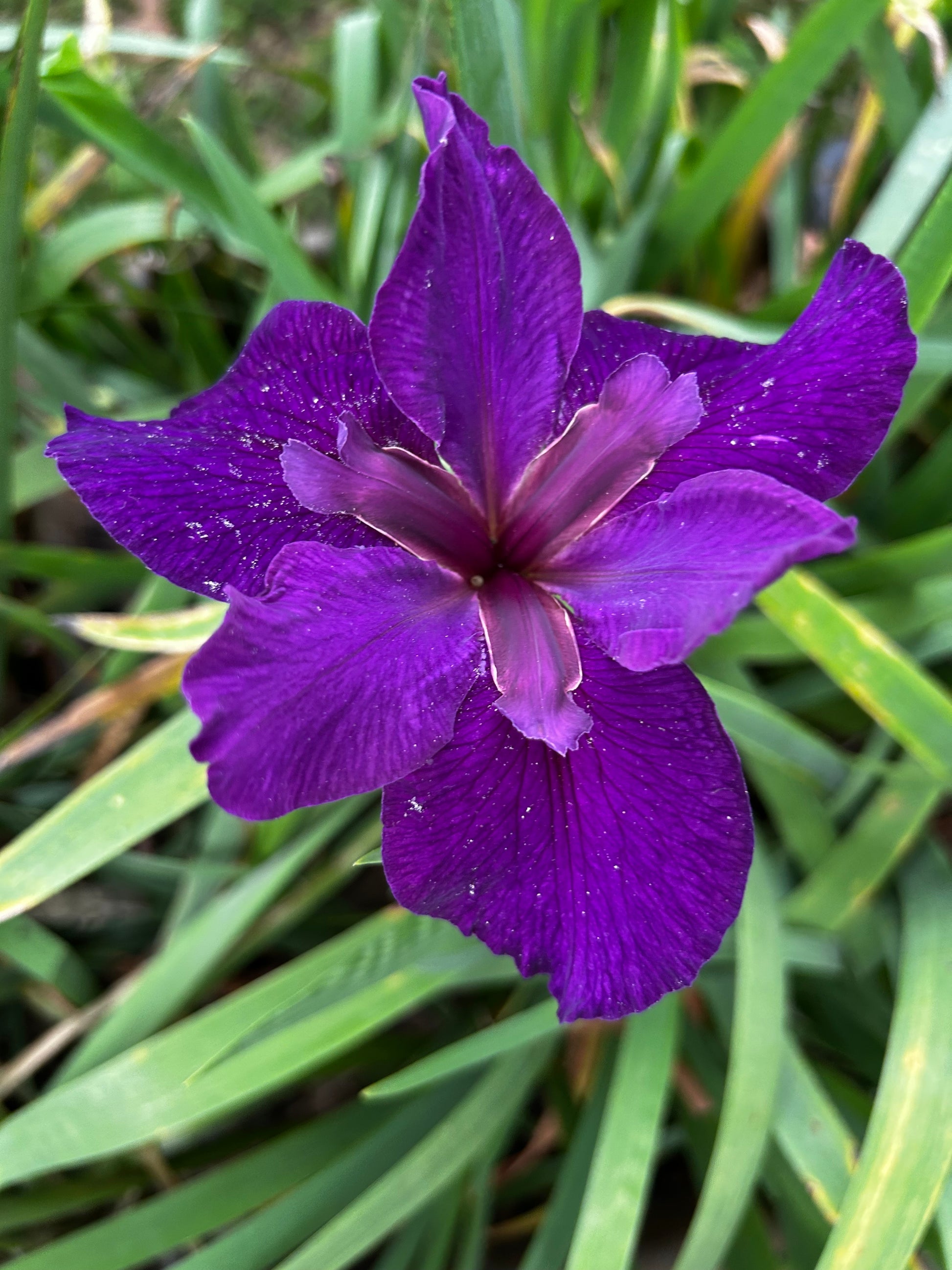 A standout and crowd pleaser. Velvety dark grape violet. (Neil Bertinot, R. 1984). 38" height and early to midseason bloomer.