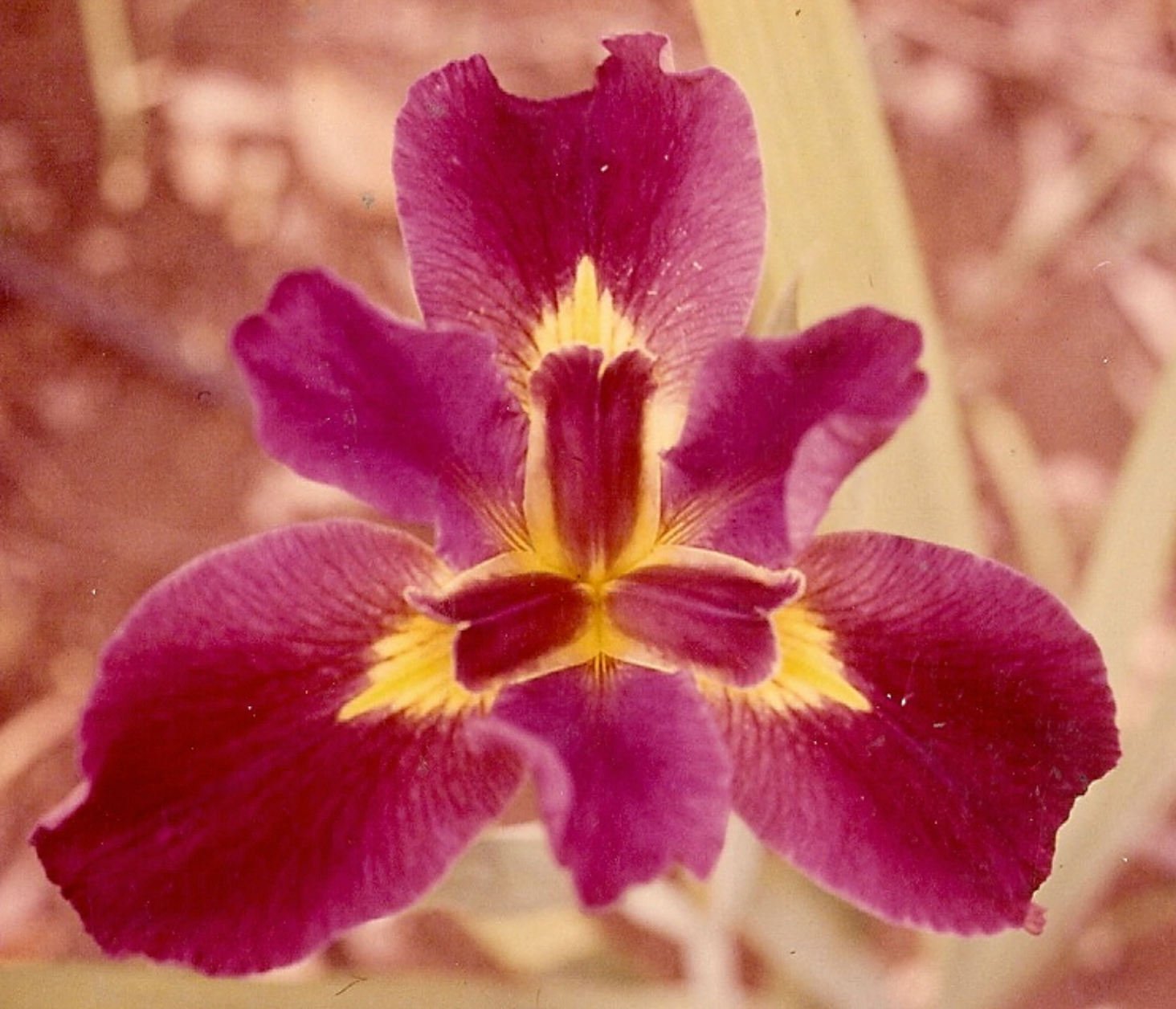 Dark red violet with brilliant yellow signal. Tetraploid. (Joseph Mertzweiller, R. 1980) 36" height and midseason bloomer.